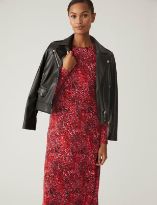 Jersey Printed Ruched Sleeve Midi Dress M S Collection M S
